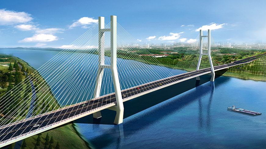 濟(jì)南黃河公路大橋采用雙塔雙索面等高鋼桁架斜拉橋結(jié)構(gòu)形式,全長 1028 米,主跨 488 米,主塔高 168 米,主梁采用整體式鋼桁梁斷面,上下兩層,上層橋面為雙向八車道公路橋面,下層為雙線軌道橋面。濟(jì)南黃河公路大橋是貫徹落實(shí)黃河流域生態(tài)保護(hù)和高質(zhì)量發(fā)展的國家戰(zhàn)略深入實(shí)施的重大項(xiàng)目,是加快濟(jì)南“擁河發(fā)展”、奮力開啟“黃河時代”的重要保障。